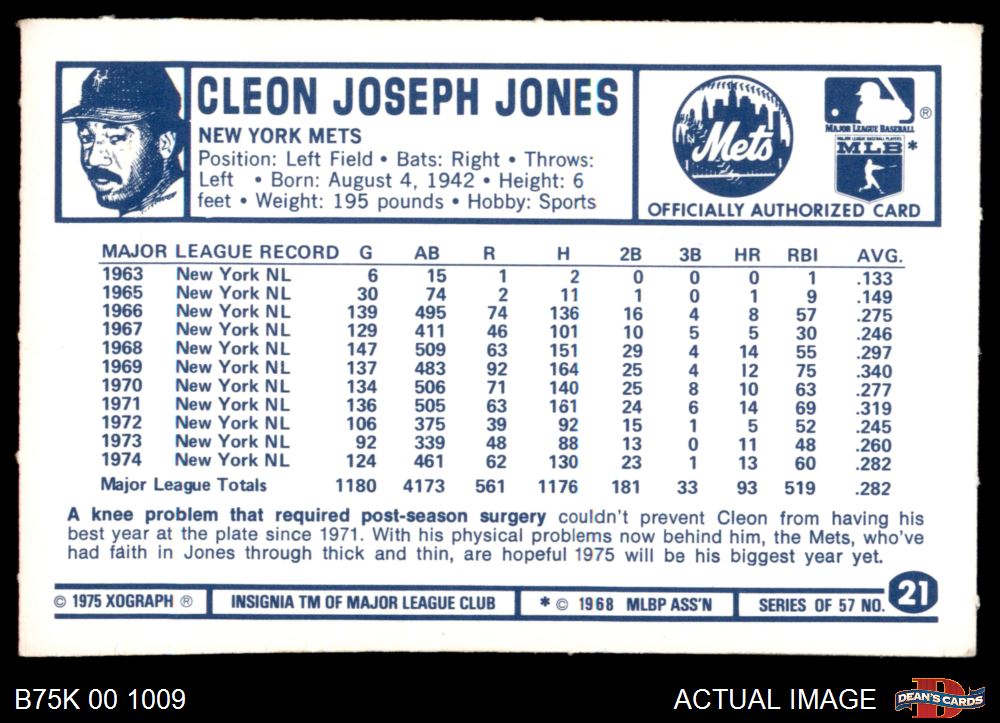 1975 Kellogg's #21 Cleon Jones 8 - NM/MT