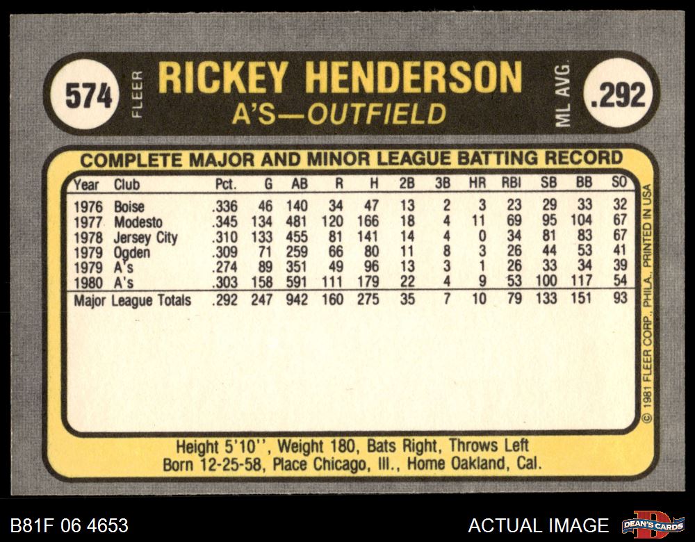 1981 Fleer #574 Rickey Henderson