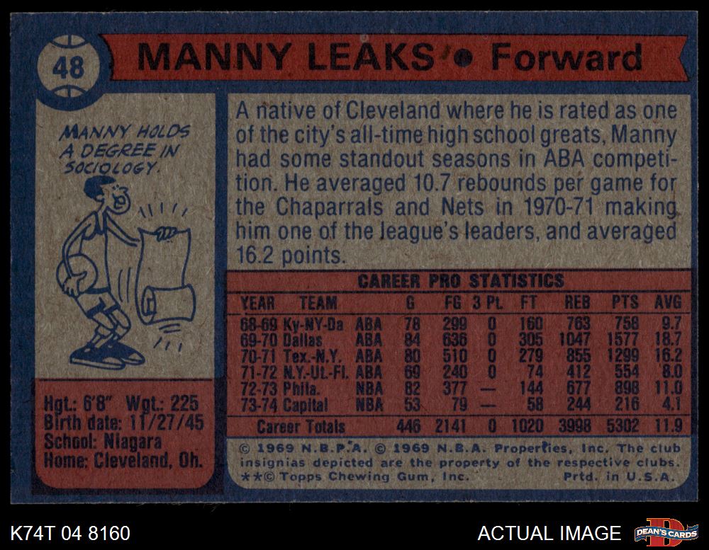 1974 Topps #48 Manny Leaks 7.5 - NM+