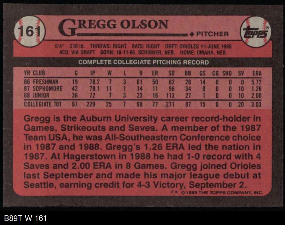 1989 Topps #161 Gregg Olson 8 - NM/MT