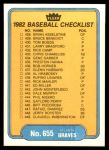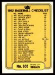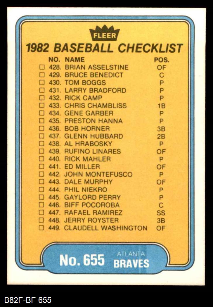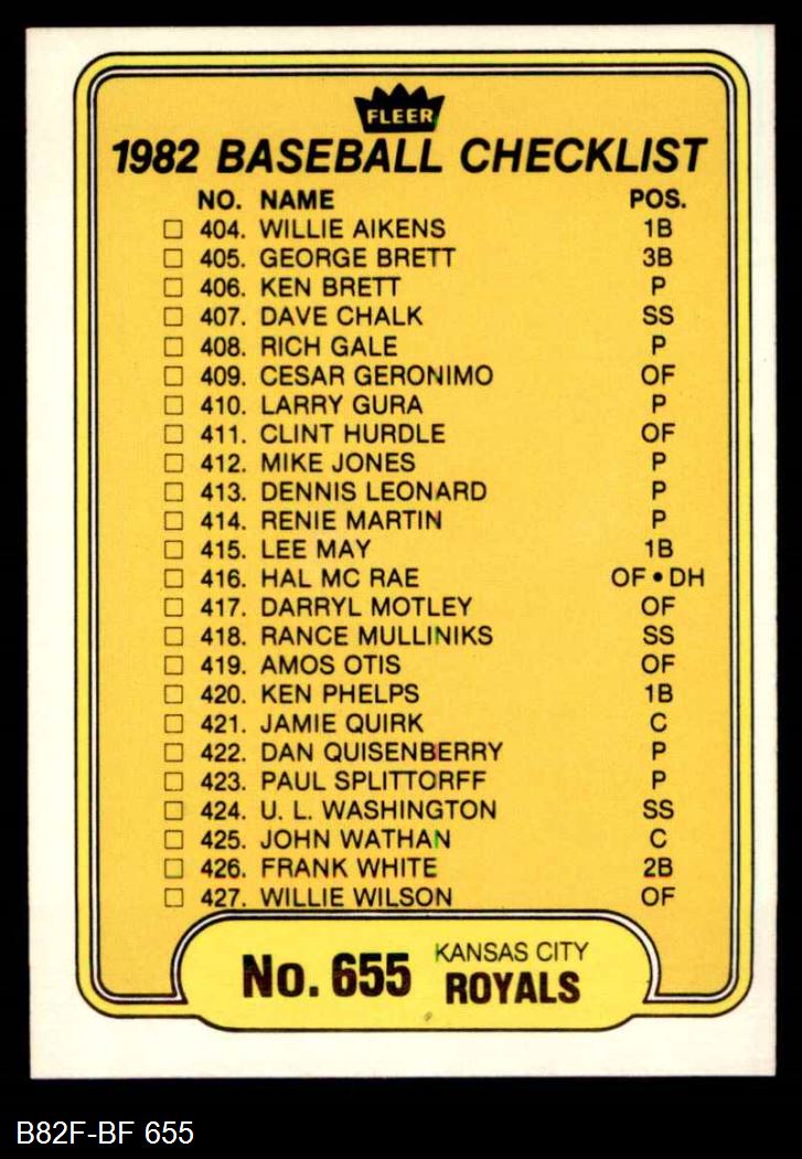 1982 Fleer #655 Royals / Braves Checklist