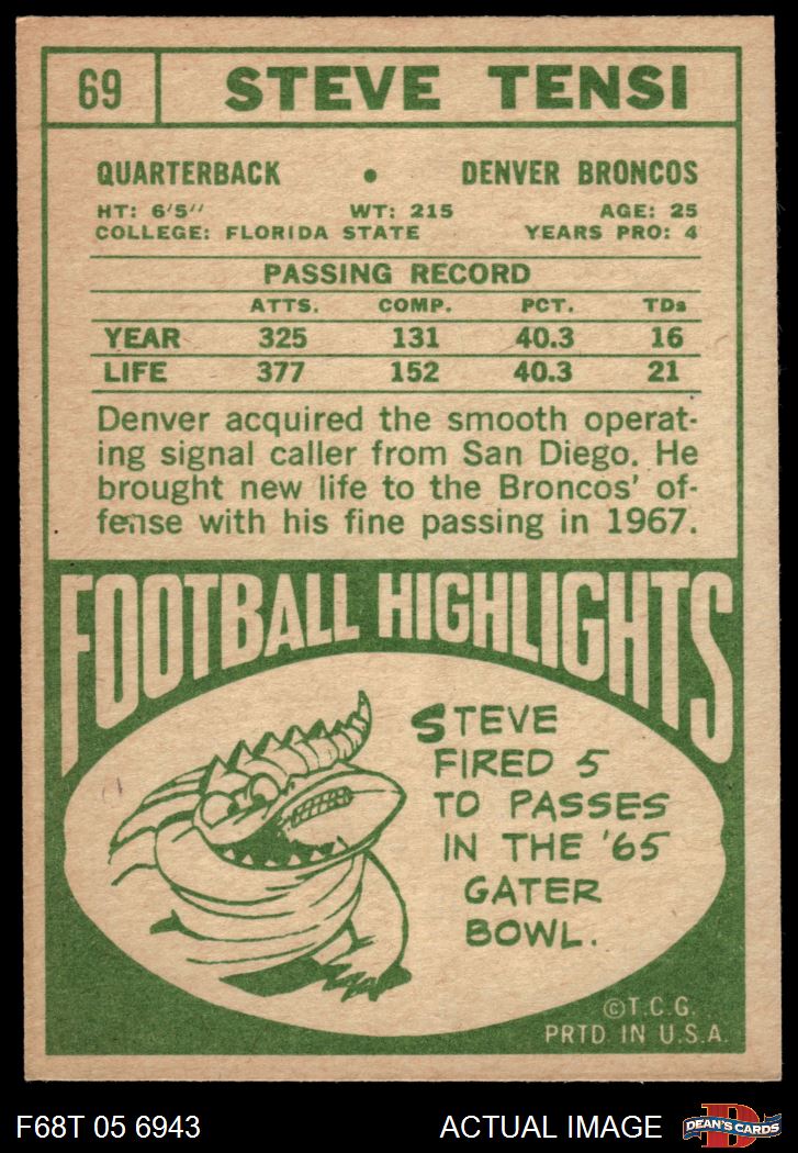 1968 Topps #69 Steve Tensi 6 - EX/MT