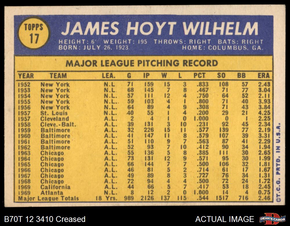 1970 Topps #17 Hoyt Wilhelm 3 - VG