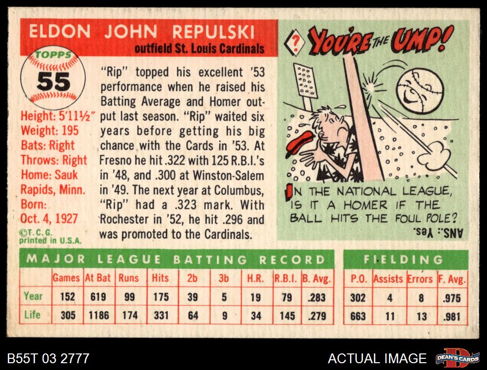1955 Topps #55 Rip Repulski 5 - EX