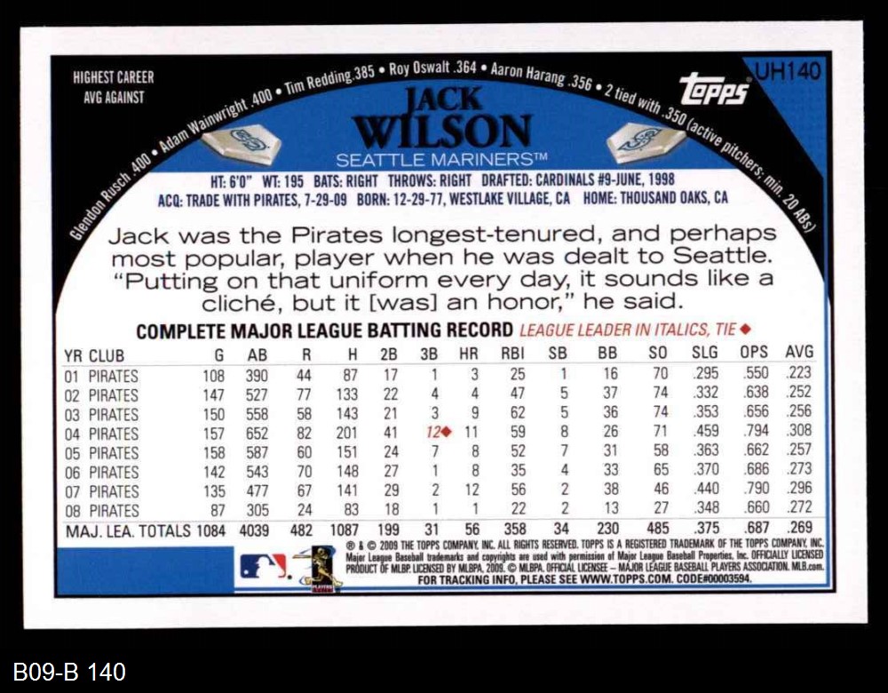 2009 Topps Update #140 Jack Wilson 8 - NM/MT