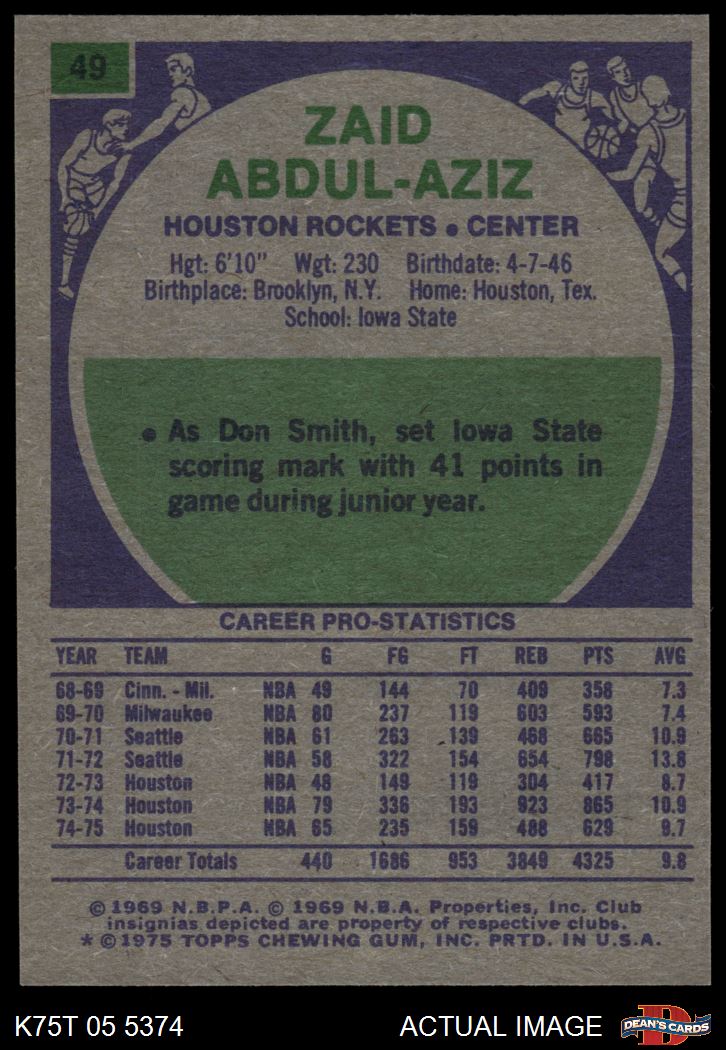 1975 Topps #49 Zaid Abdul Aziz 8 - NM/MT
