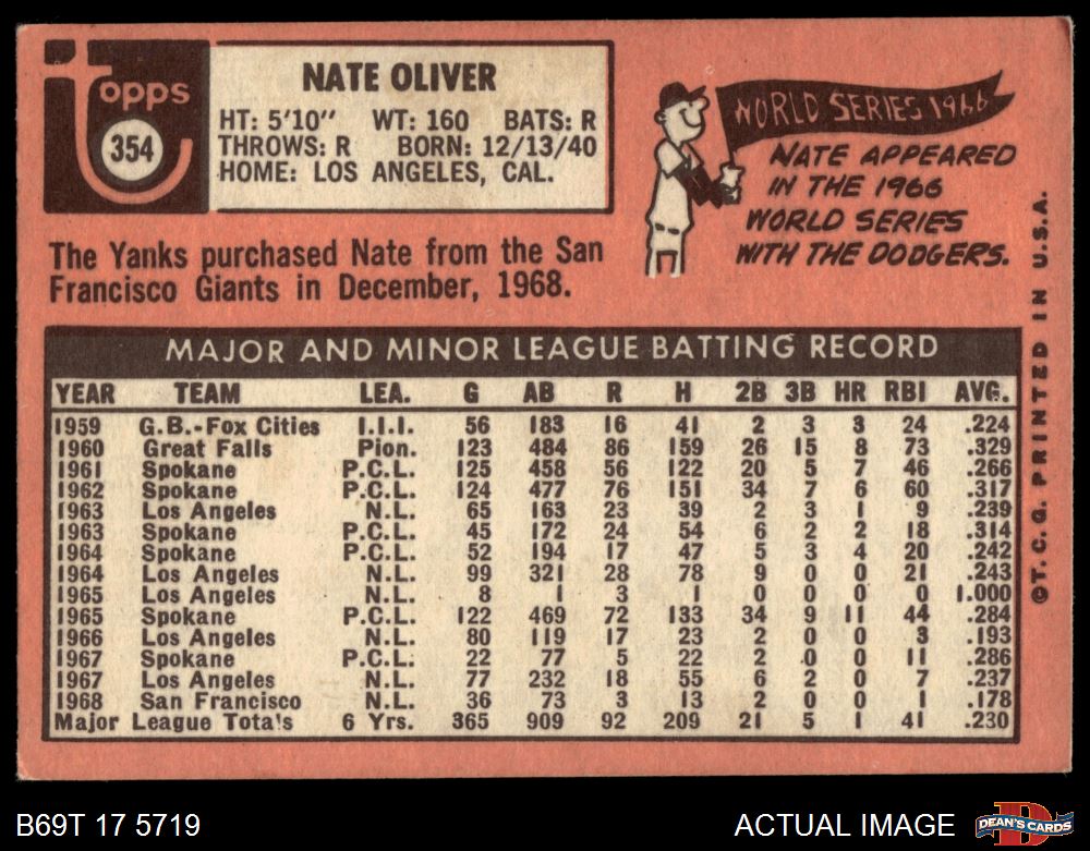 1969 Topps #354 Nate Oliver 2 - GOOD