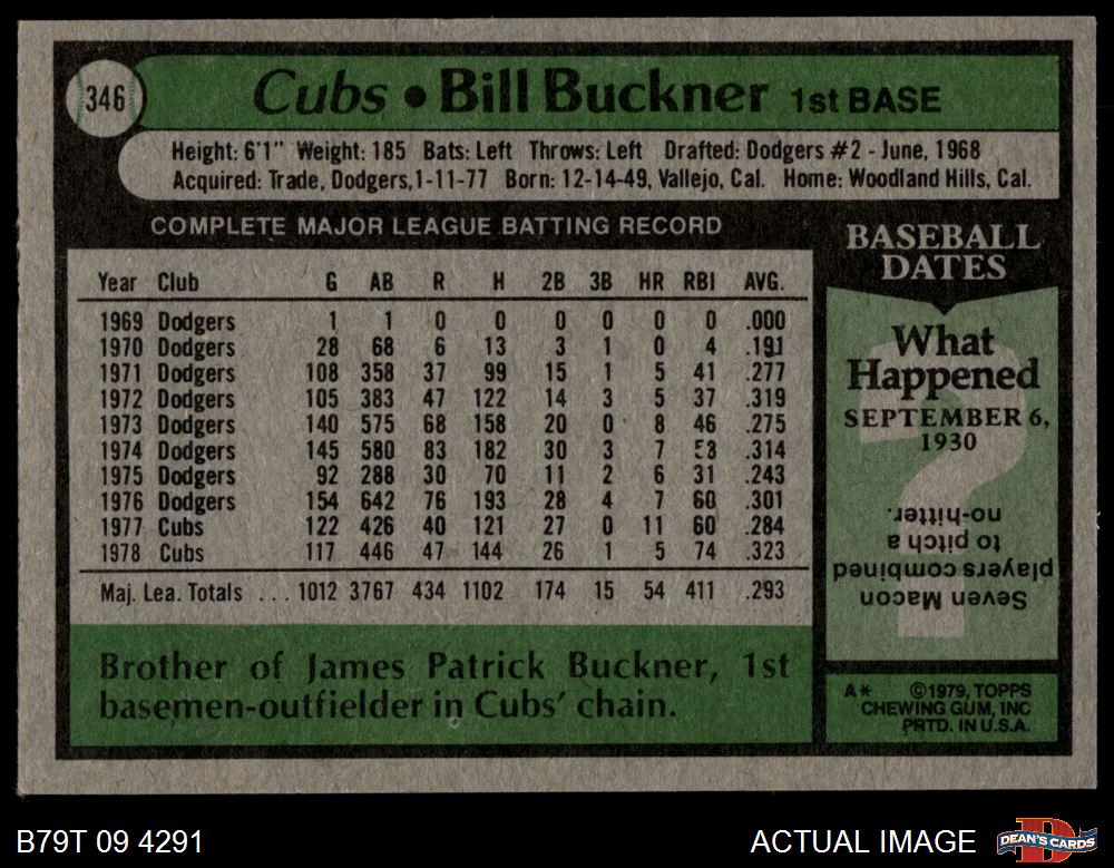 1979 Topps #346 Bill Buckner 6 - EX/MT