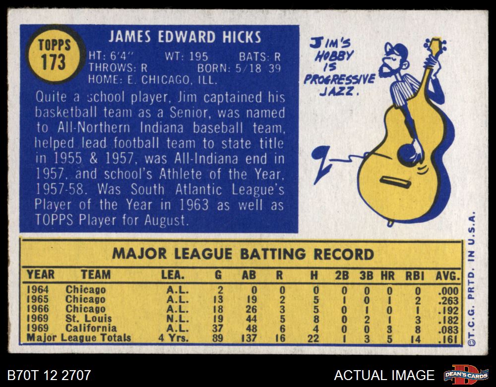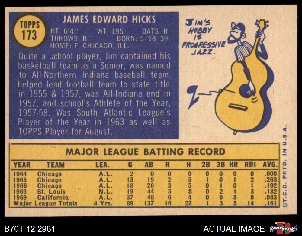 1970 Topps #173 Jim Hicks