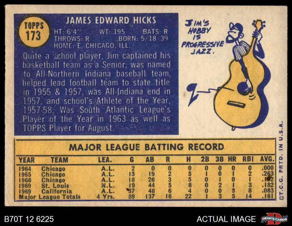 1970 Topps #173 Jim Hicks 4 - VG/EX