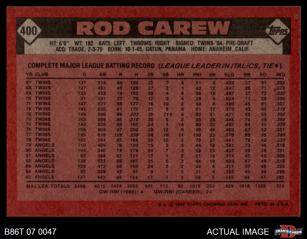 1986 Topps #400 Rod Carew 8 - NM/MT