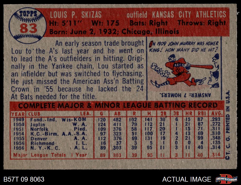 1957 Topps #83 Lou Skizas