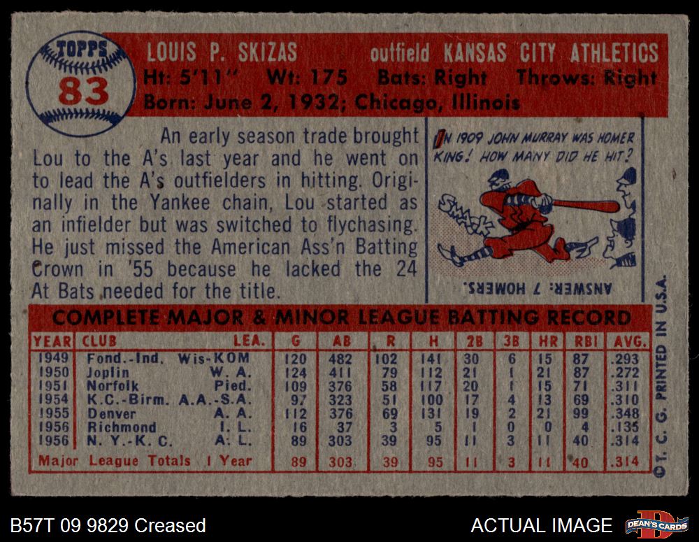 1957 Topps #83 Lou Skizas 2.5 - GD+