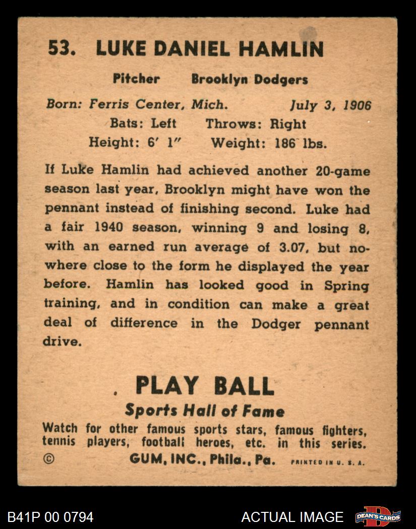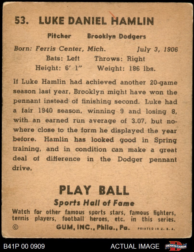 1941 Play Ball (R336) Baseball Cards (211 available)1941 Play Ball Dodgers (24 available)