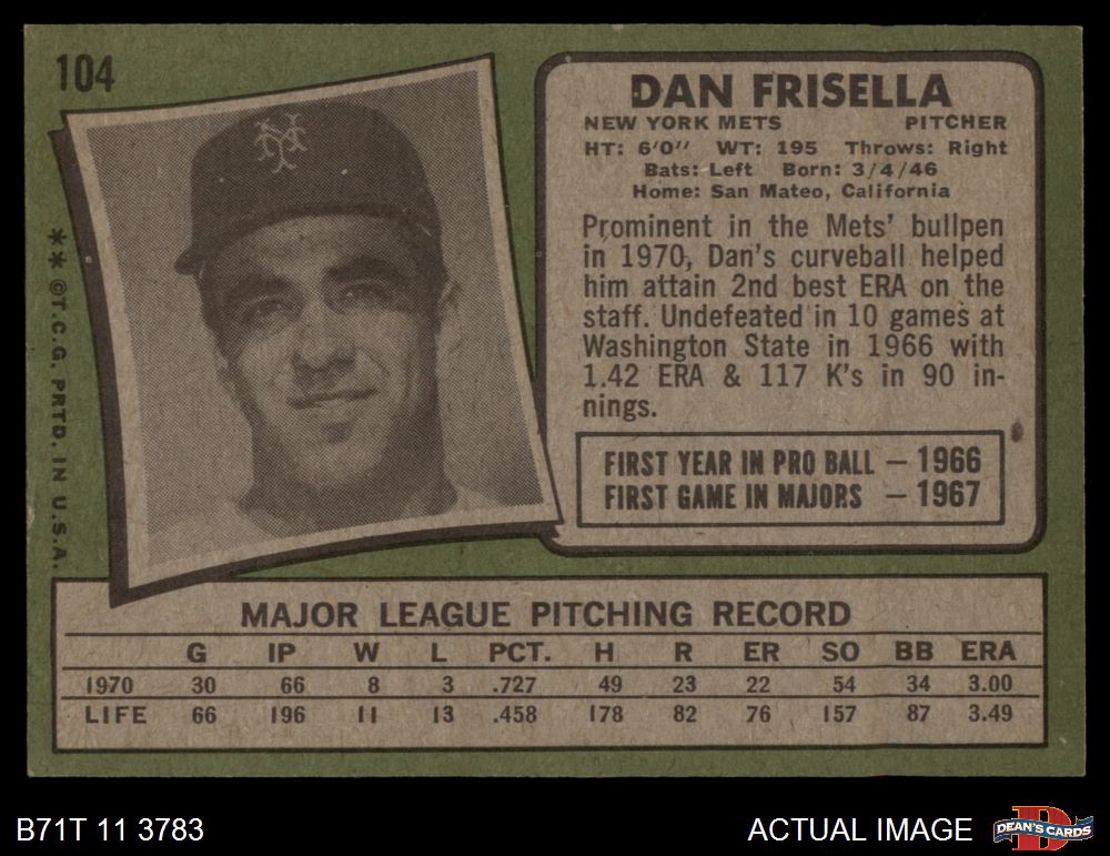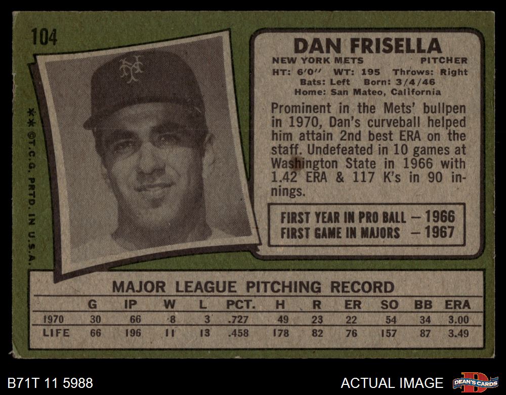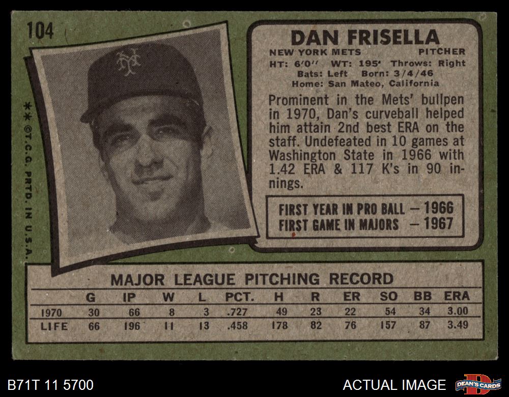 1971 Topps #104 Danny Frisella