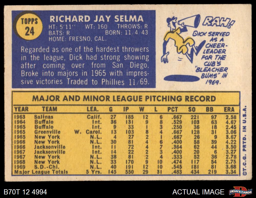 1970 Topps #24 Dick Selma 4 - VG/EX
