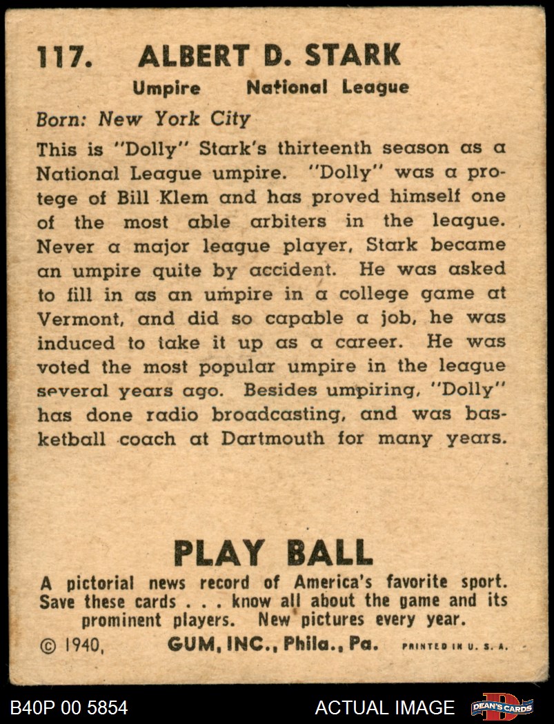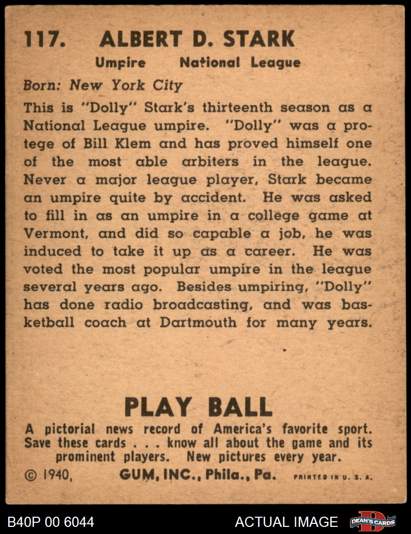 1940 Play Ball #117 Dolly Stark 4 - VG/EX