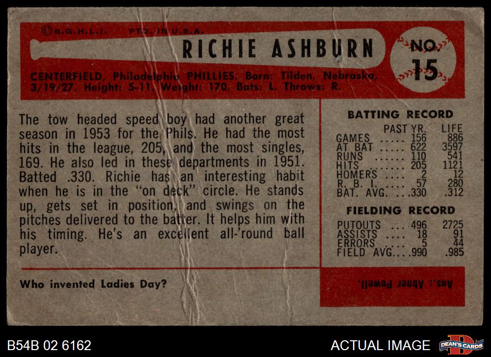 1954 Bowman #15 Richie Ashburn 1 - POOR