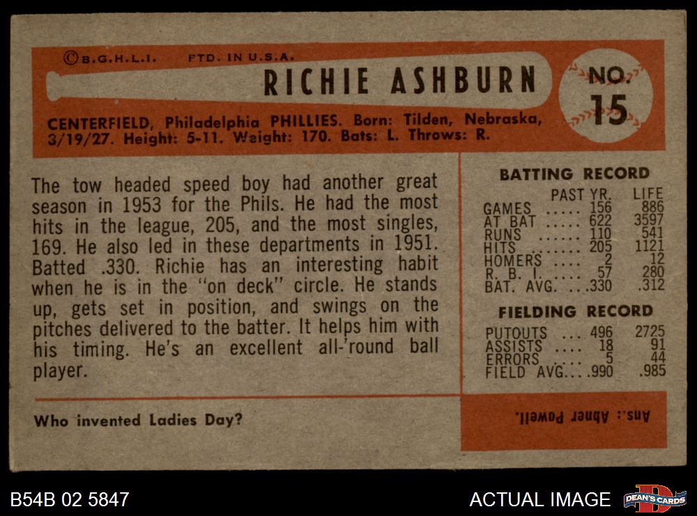 1954 Bowman #15 Richie Ashburn 4 - VG/EX