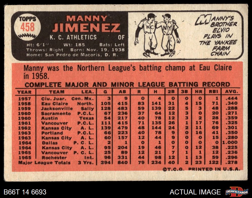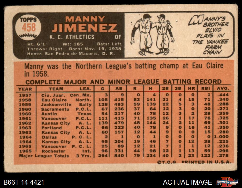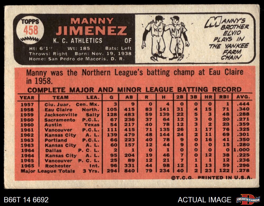 1966 Topps #458 Manny Jimenez