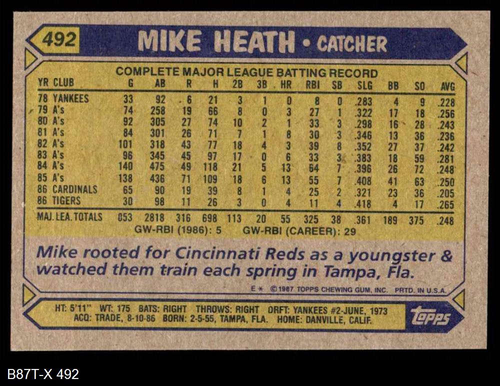 1987 Topps #492 Mike Heath