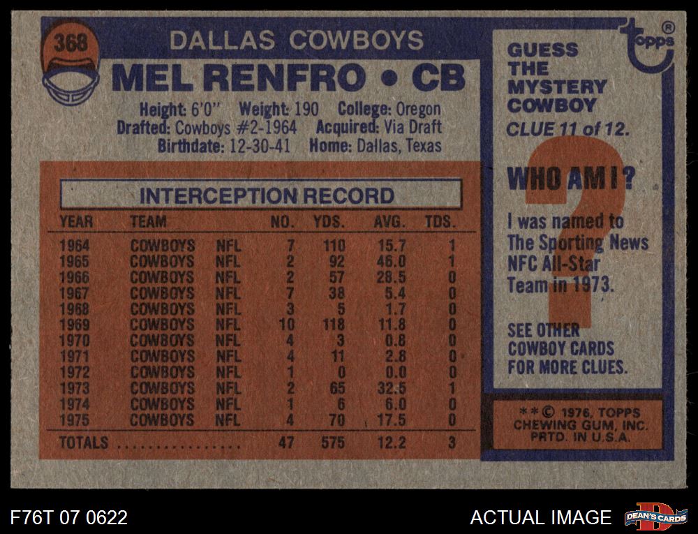 1976 Topps #368 Mel Renfro