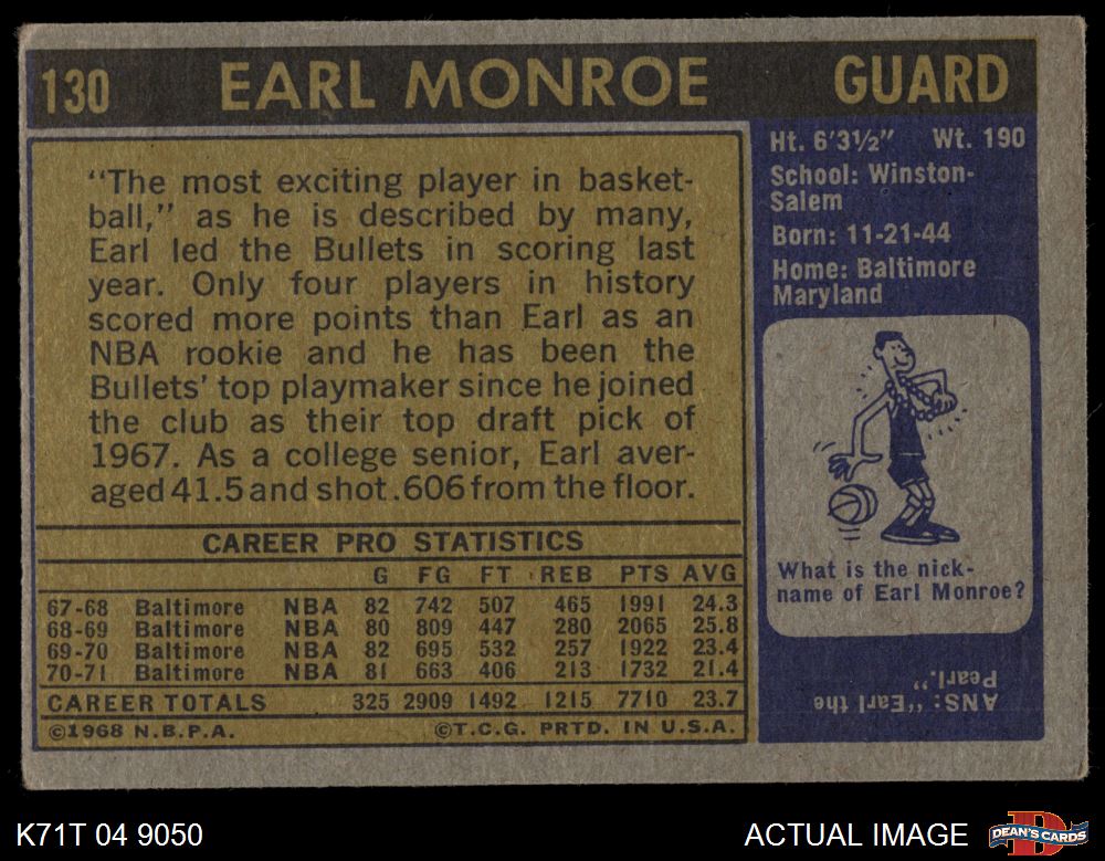 1971 Topps #130 Earl Monroe 3 - VG