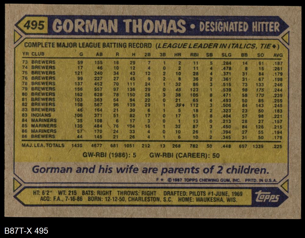 1987 Topps #495 Gorman Thomas