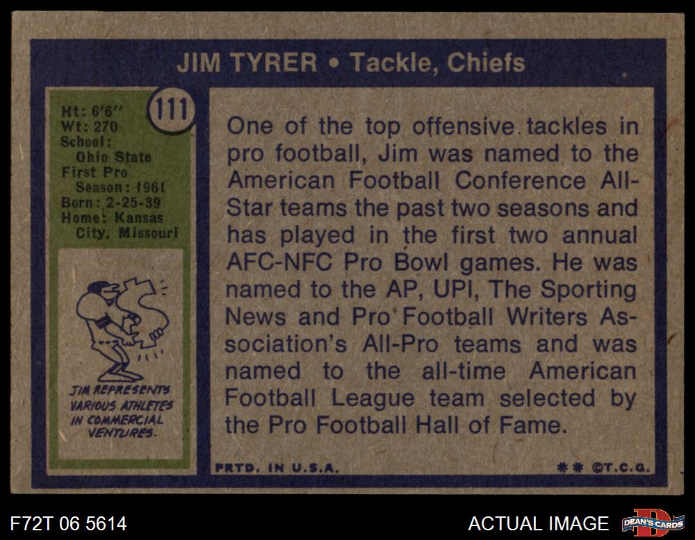 1972 Topps #111 Jim Tyrer 4 - VG/EX