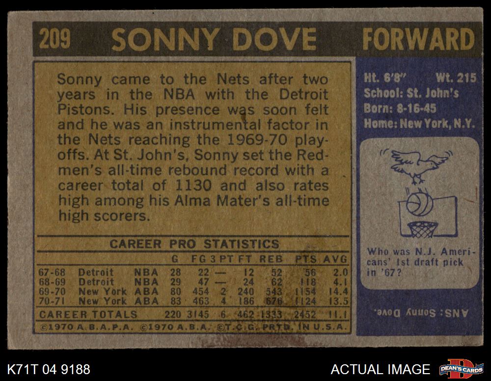 1971 Topps #209 Sonny Dove 2 - GOOD