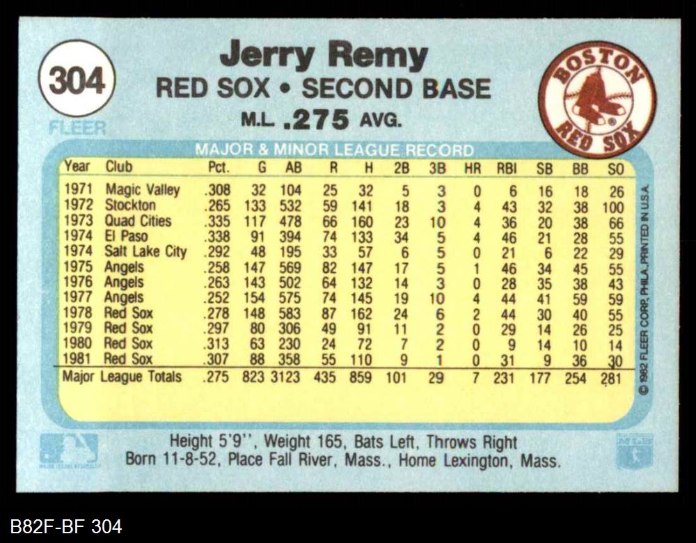 1982 Fleer #304 Jerry Remy