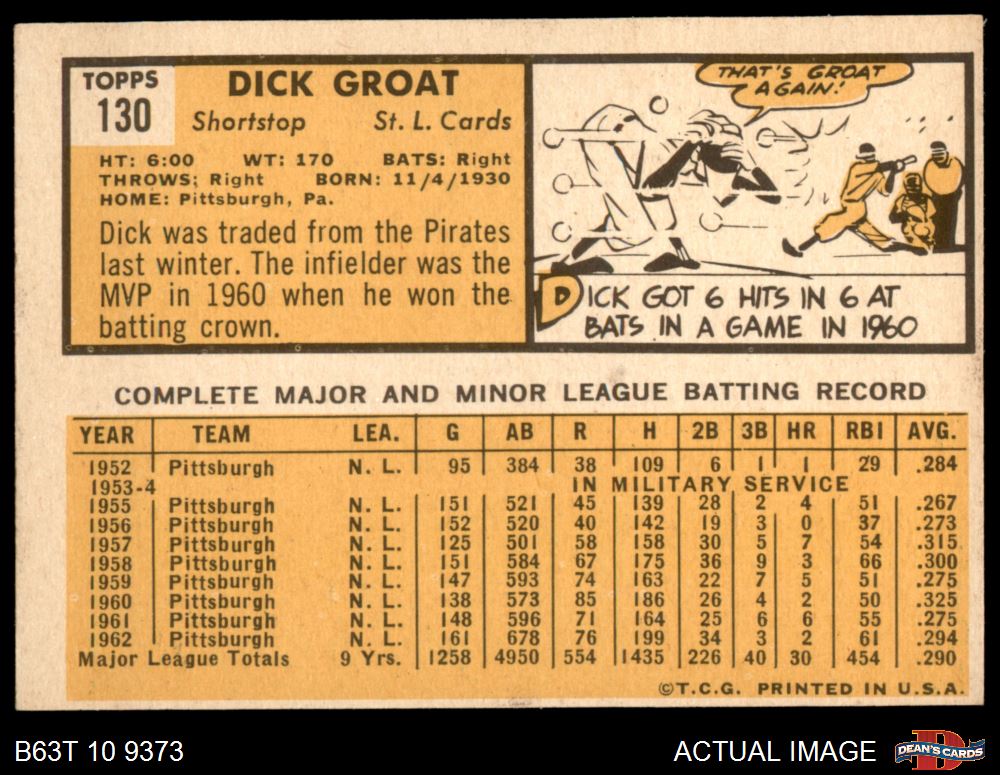 1963 Topps #130 Dick Groat 5 - EX