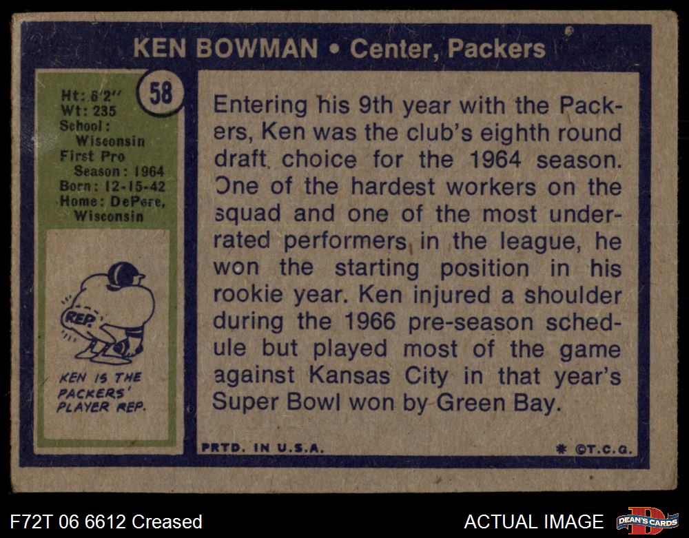 1972 Topps #58 Ken Bowman 1.5 - FAIR