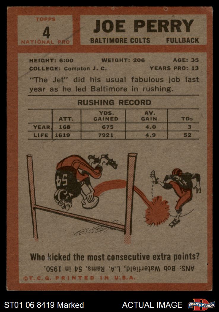 1962 Topps #4 Joe Perry 1.5 - FAIR