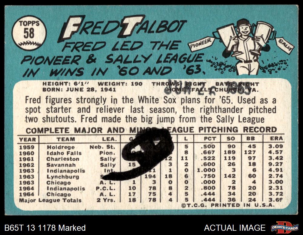 1965 Topps #58 Fred Talbot 1.5 - FAIR