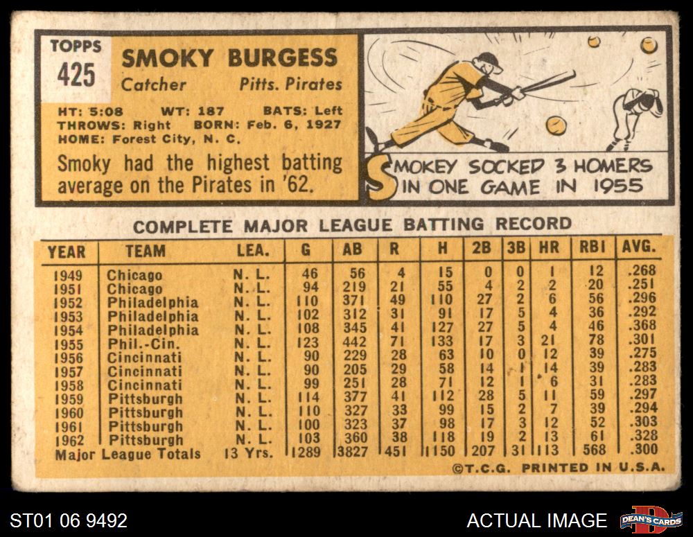 1963 Topps #425 Smoky Burgess 1 - POOR