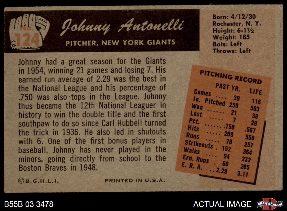 1955 Bowman #124 Johnny Antonelli