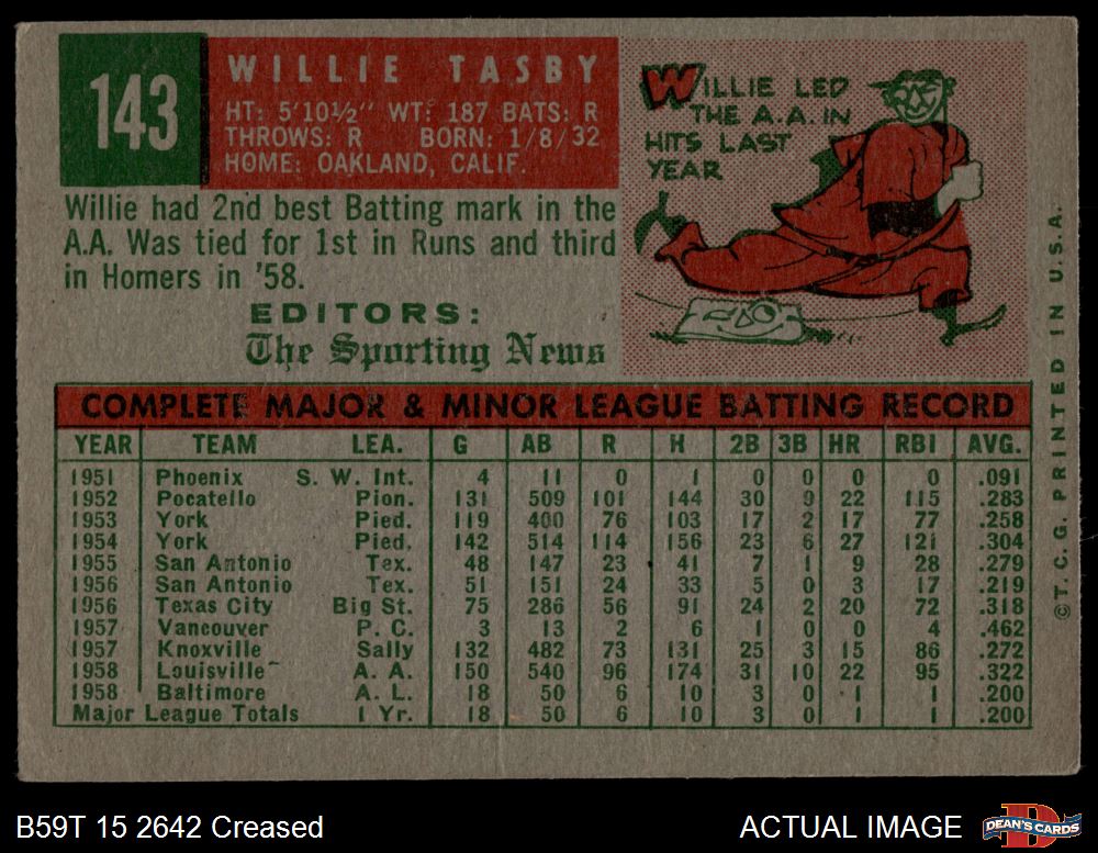 1959 Topps #143 Willie Tasby