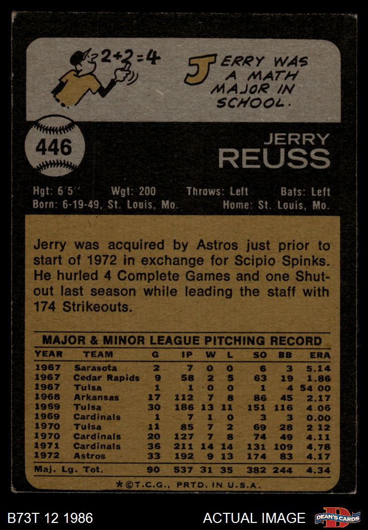1973 Topps #446 Jerry Reuss 3 - VG