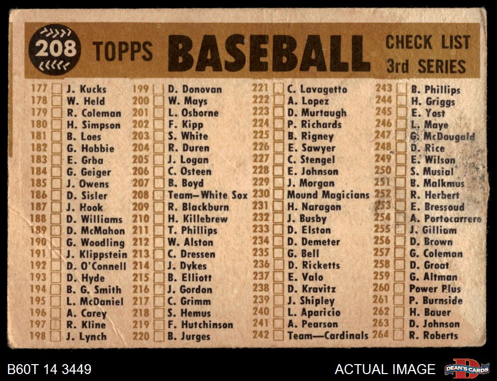 1960 Topps #208 White Sox Team Checklist 1 - POOR
