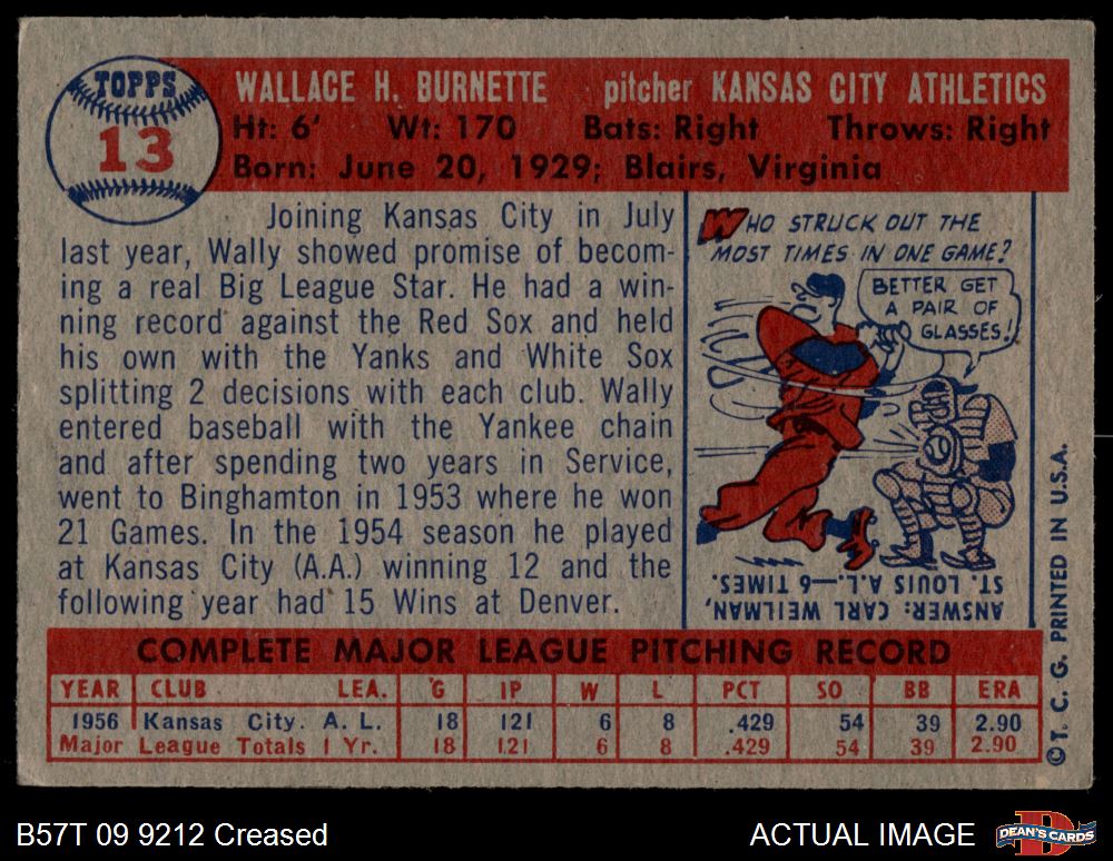 1957 Topps #13 Wally Burnette 2 - GOOD