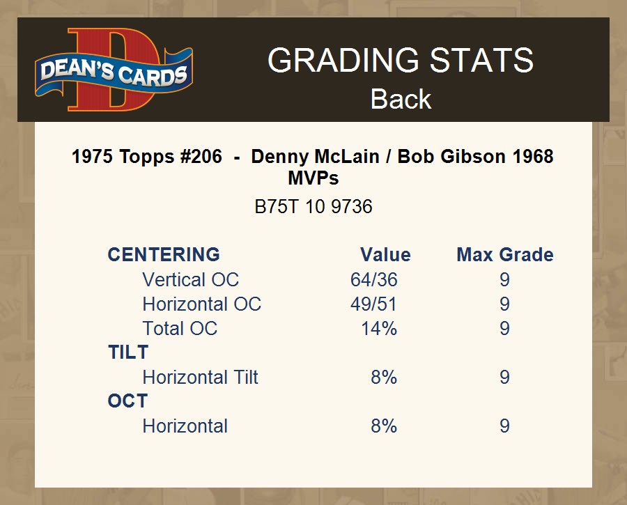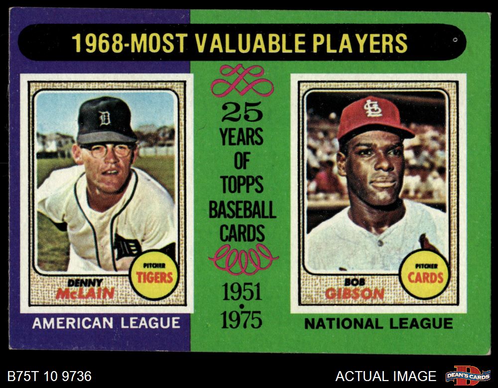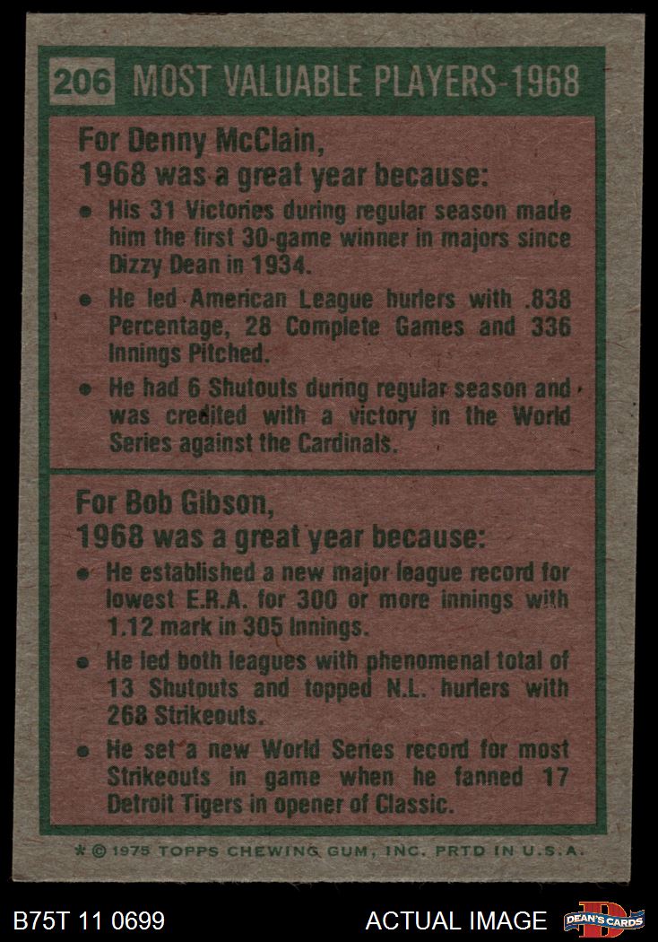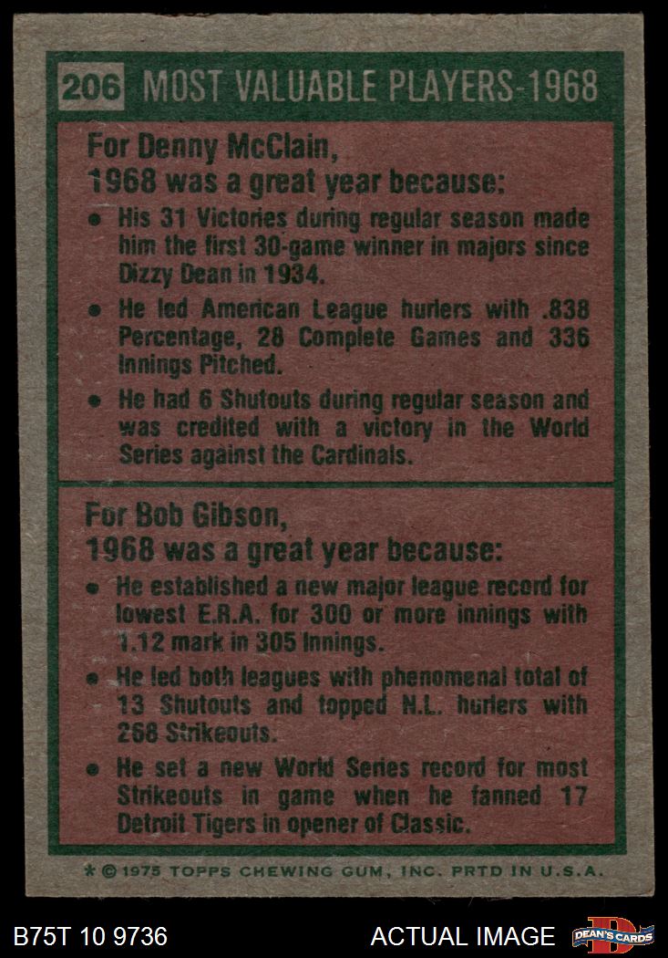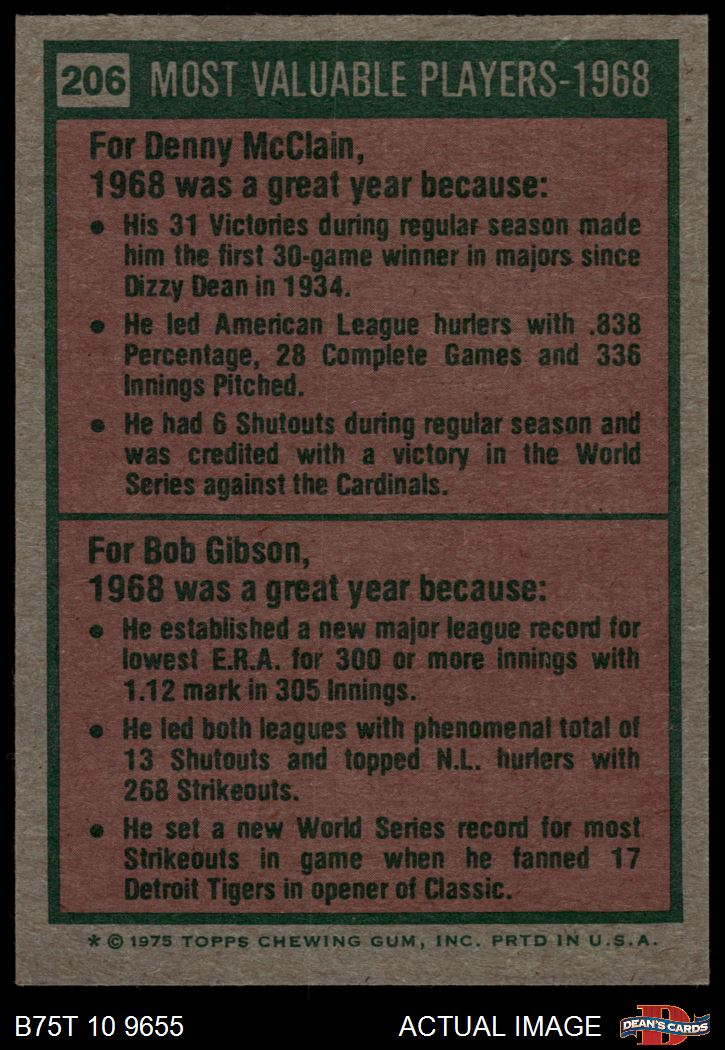 1975 Topps #206 - Denny McLain / Bob Gibson 1968 MVPs 6 - EX/MT