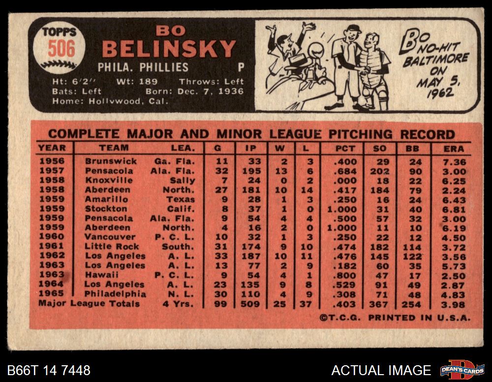 1966 Topps #506 Bo Belinsky 2 - GOOD