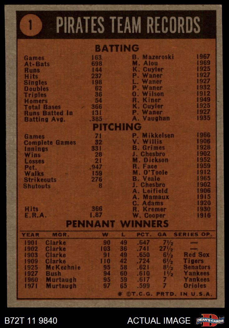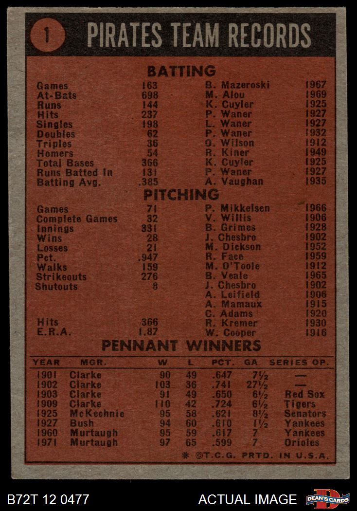 1972 Topps #1 - World Champions Pirates Team 2 - GOOD