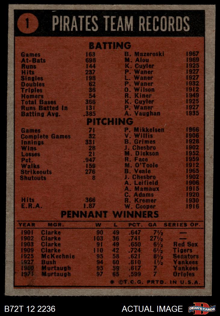 1972 Topps #1 - World Champions Pirates Team 3.5 - VG+