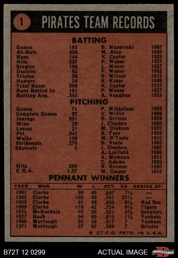1972 Topps #1 - World Champions Pirates Team 6 - EX/MT