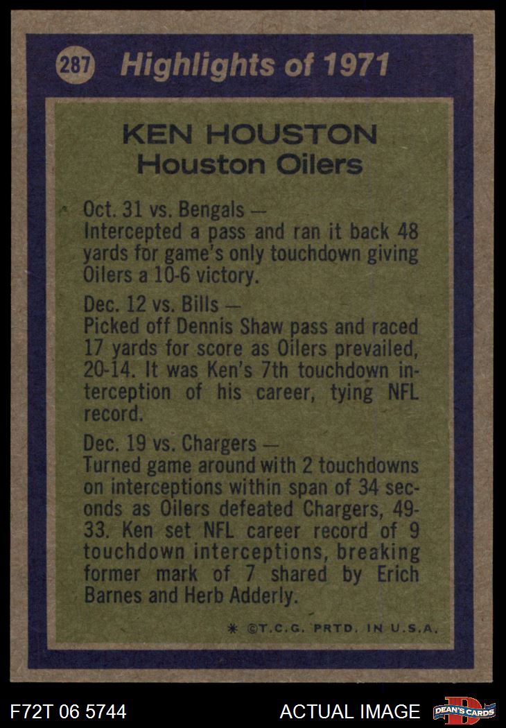 1972 Topps #287 - Ken Houston All-Pro 7 - NM