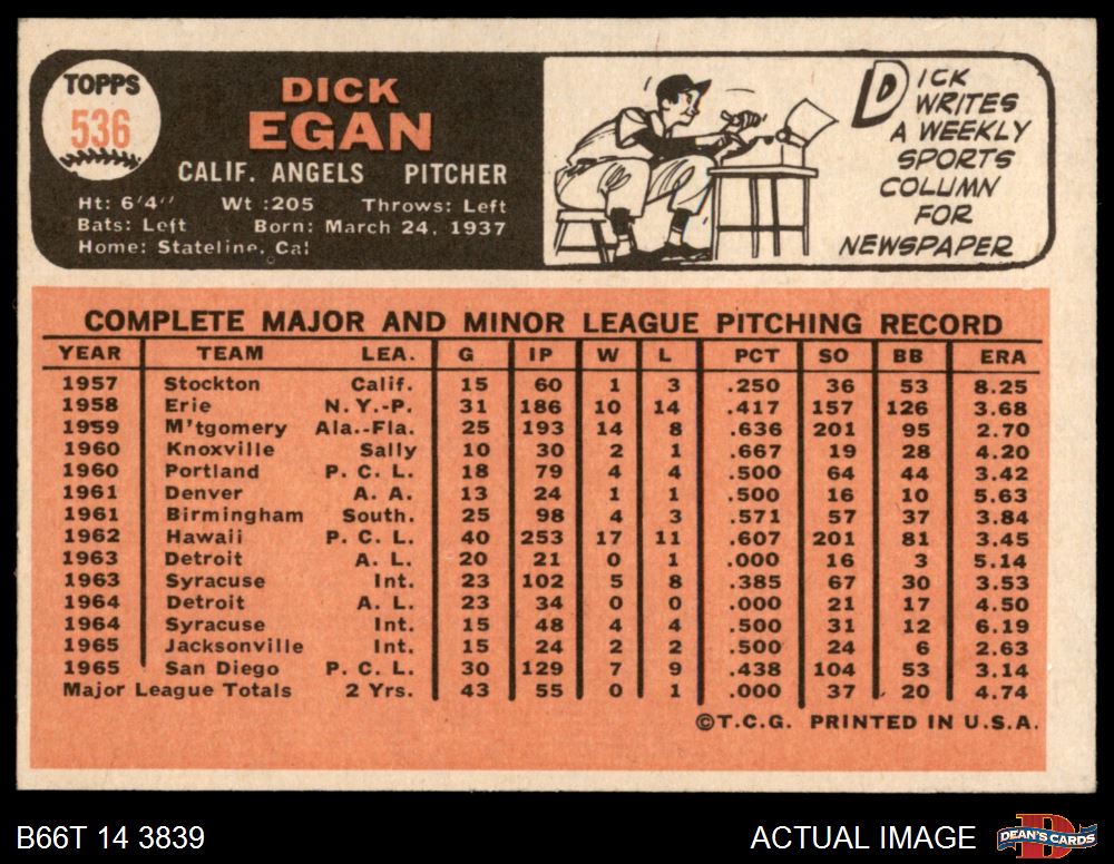 1966 Topps #536 Dick Egan 4 - VG/EX