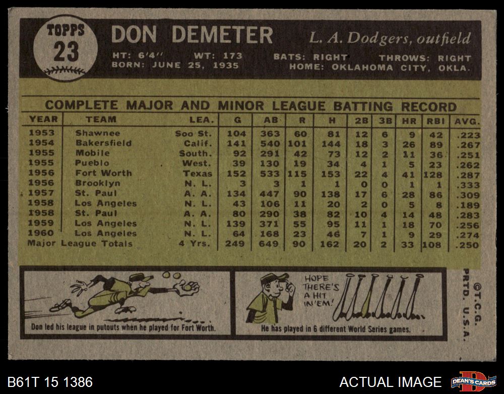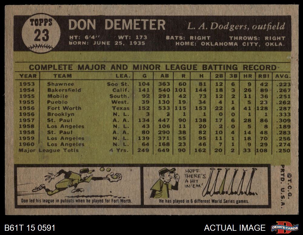 1961 Topps #23 Don Demeter 5 - EX