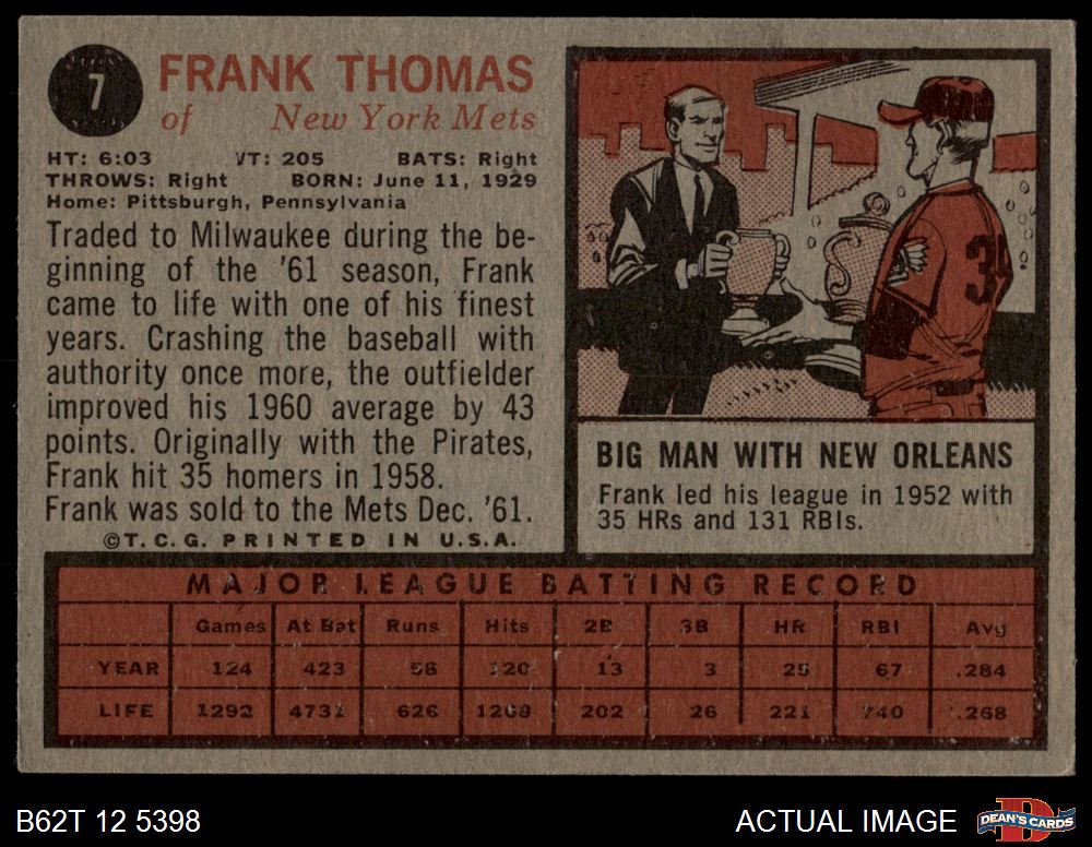 1962 Topps #7 Frank Thomas 3.5 - VG+